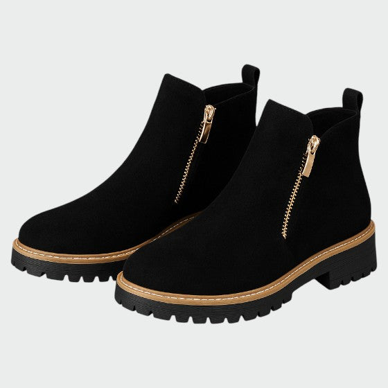 Disse smukke ankelstøvler er skabt til den moderne kvinde, der ønsker både stil og funktionalitet. Med deres runde tå og elegante sidelynlås giver de et sofistikeret look, samtidig med at de er nemme at tage af og på. Perfekte til både hverdag og mere stilfulde lejligheder.